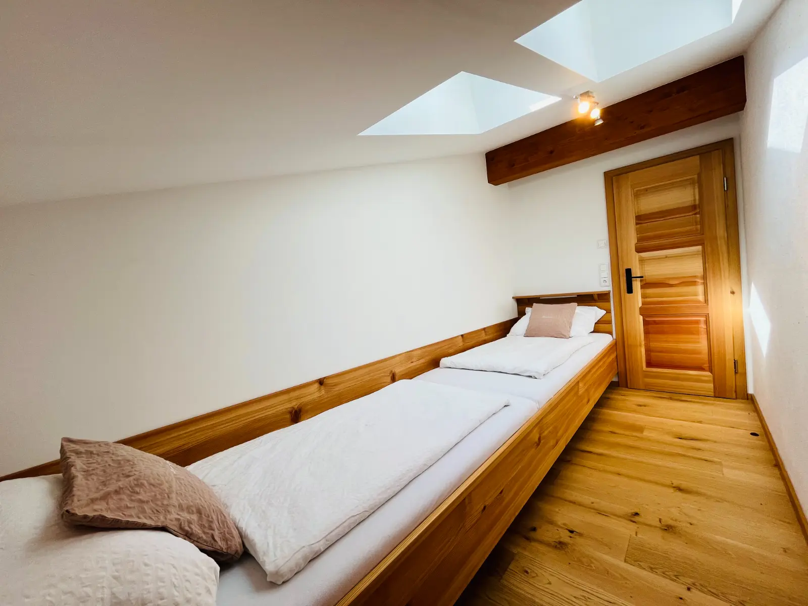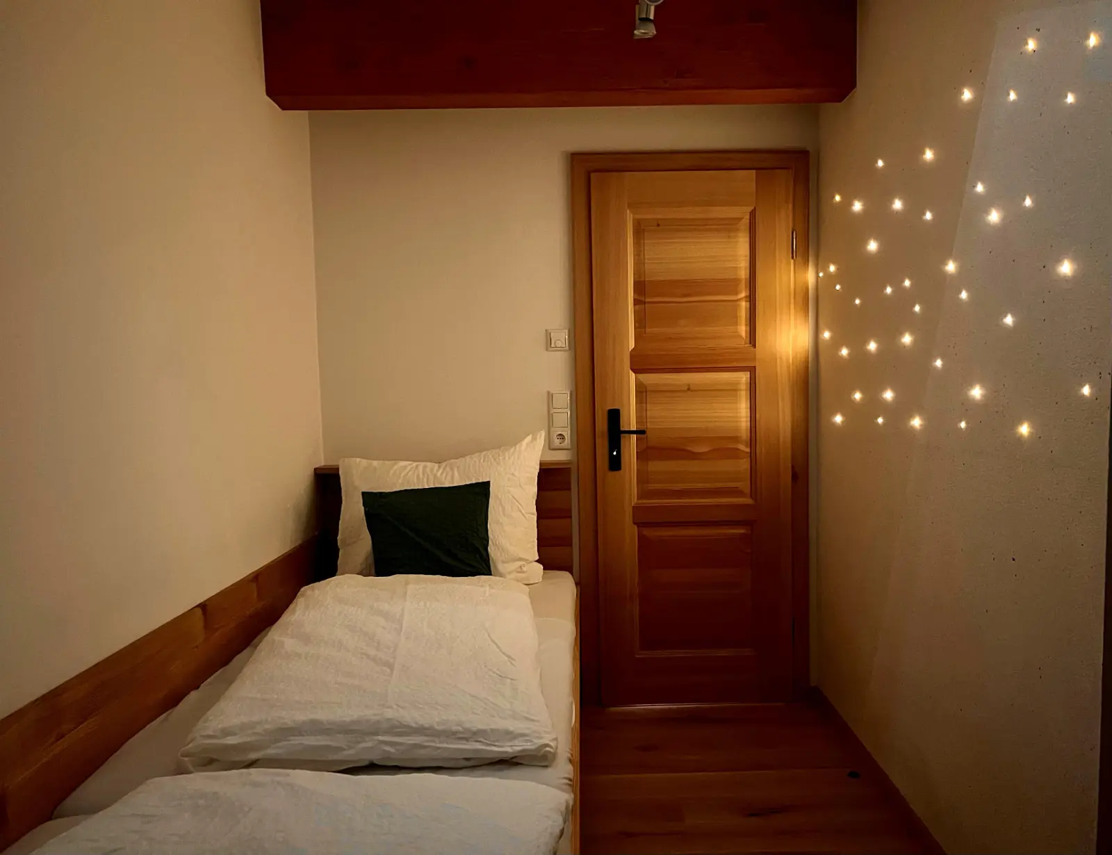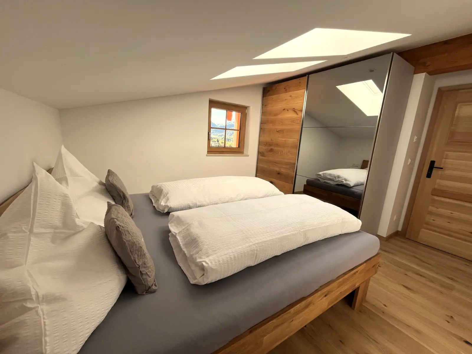 Für Euch als Familie oder mit Freunden, ist unsere Ferienwohnung „Alpenpanorama“ eine wunderbare Unterkunft. Die beiden separaten Schlafzimmer (Doppelbett + zwei Einzelbetten) bieten Privatsphäre und erholsamen Schlaf. Die Schlafumgebung haben wir bewusst mit Naturmaterialien wie Echtholzparkettboden und Betten aus Vollholz eingerichtet und bieten Euch damit ein angenehmes Raumklima und eine gesunde Schlafumgebung.