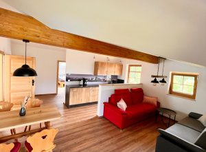 Unsere Ferienwohnung Kehlstein ist eine geschmackvolle modern neu eingerichtete Ferienwohnung in der obersten Etage mit Mansardenflair in unserem Hause.